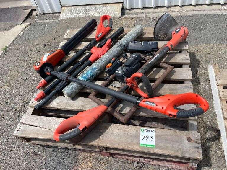 LOT 743 - Pallet Black&Decker Tools (untested no charger), Post Hole Driver, Wire
