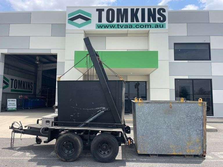 LOT 63 - 3 Cubic Metre Hydraulic Skip Bin Trailer inc 2x Bins