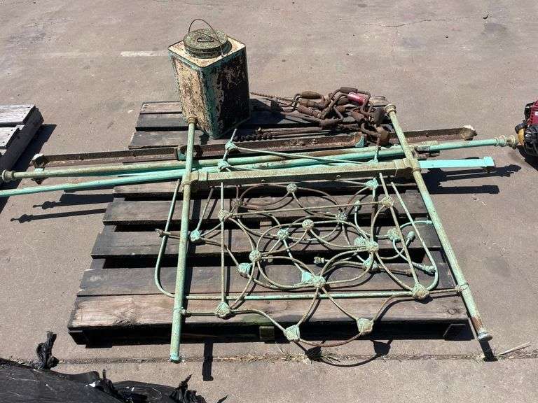 LOT 407 - Antique Bed Frame, Tin and Tools