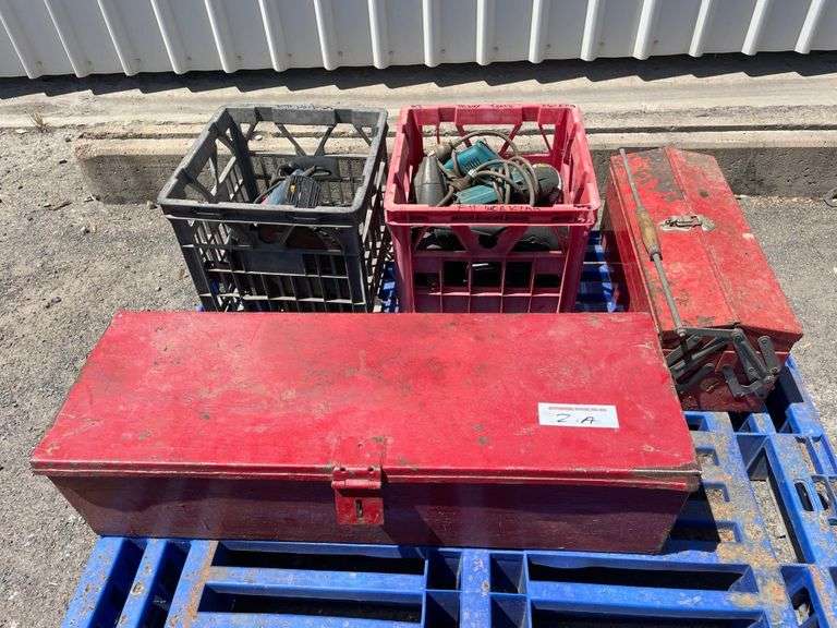 LOT 763 - Pallet inc Red Toolboxes and Assorted Power Tools