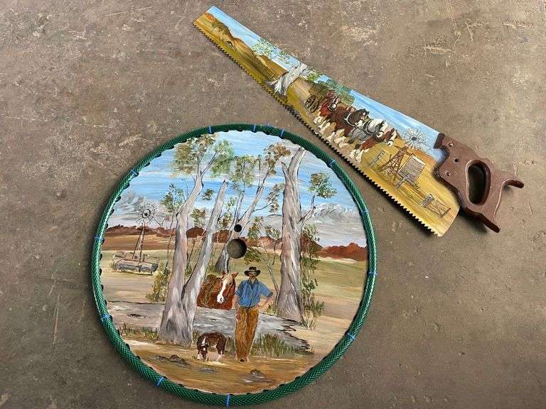 LOT 460 - 2x Hand Painted Saws - Round and Long